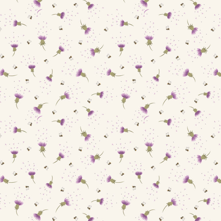 Cream Bee Thistle - Cotton Print