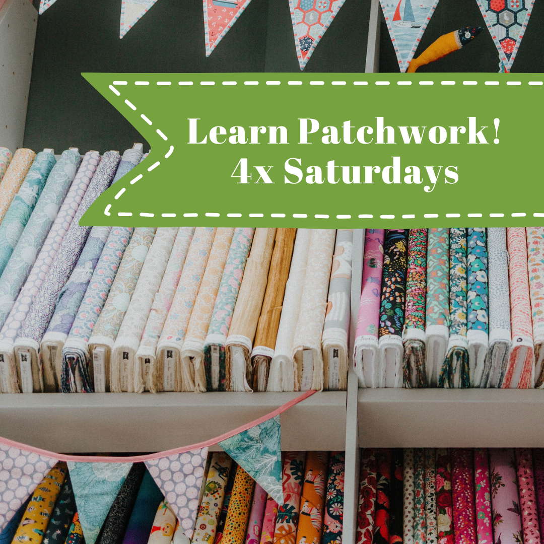 - Six different fat-quarters of quilt-weight cotton fabrics. You can buy fat quarters from any reputable fabric shop, they usually measure about 55cm x 50cm. If you are using fabric offcuts and large remnants, please trim your fabric before coming to class so that it's roughly the size indicated, and 6 different prints or colours. If you have any doubt, please pop into the shop or get in touch before the first class so that we can help you out.